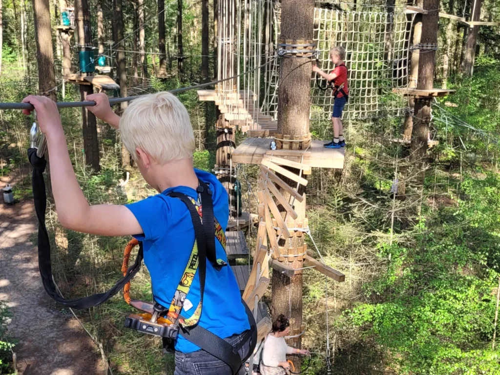 Ga op avontuur in het Klimbos Achterhoek! Er is een junior klimroute en tokkelroutes en een bungeejump voor meer uitdaging.